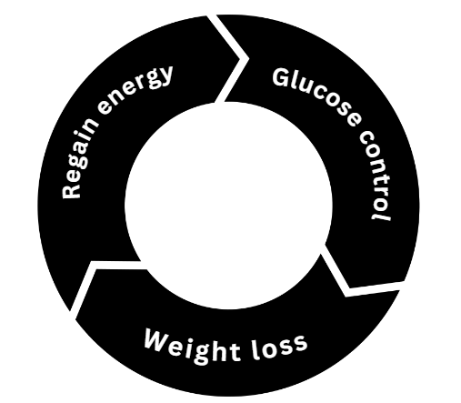 Weight loss: This is where we tie it all together so you continue the work on your own. You’ll manage your blood sugars with more ease. You’ll be empowered to put your health and body as the priority so that you can maintain or continue your weight loss. You’ll have new habits and tools that will enable you to live life to the fullest.